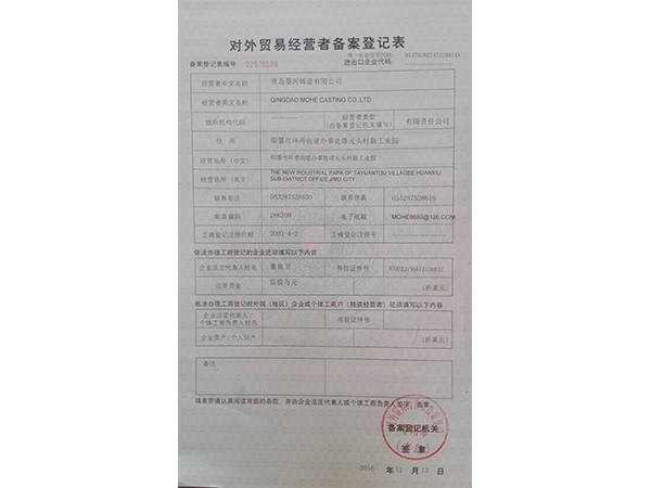 青岛墨河铸造有限公司 联系人:董照 电话:13953213469(微信同号) 座机:0532-87566543 邮箱:mohe@moher.cn QQ:1678294021 地址:青岛即墨市泰山一路南端186号